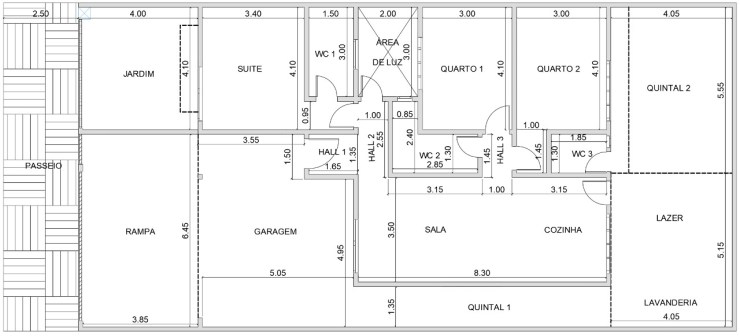 Garagem para 3 carros (2 cobertas e 1 descoberta)